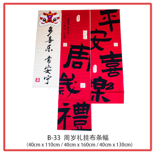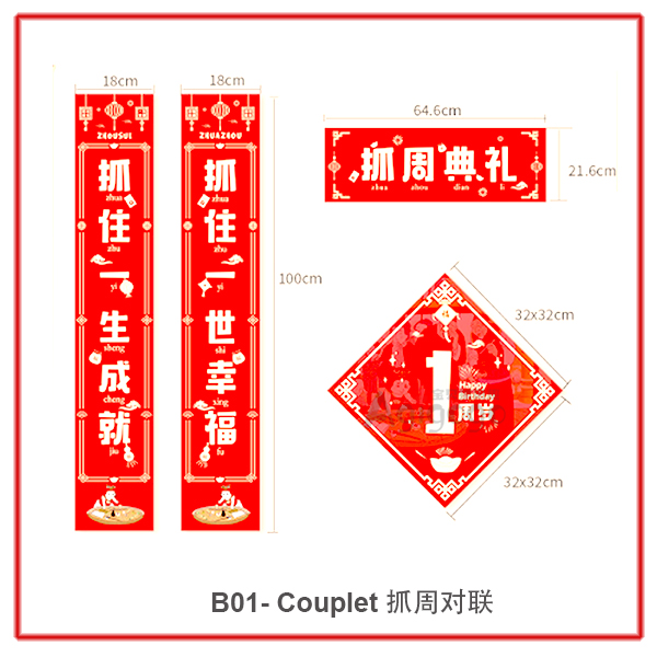 选择RM138尊享款配套,全场背景都可以任选。RM98经典款配套,可以任选 B01/B32/B31(3款)抓周对联款式。如果仅需要租借抓周背景,请查看各个背景不同的单品租借价格。