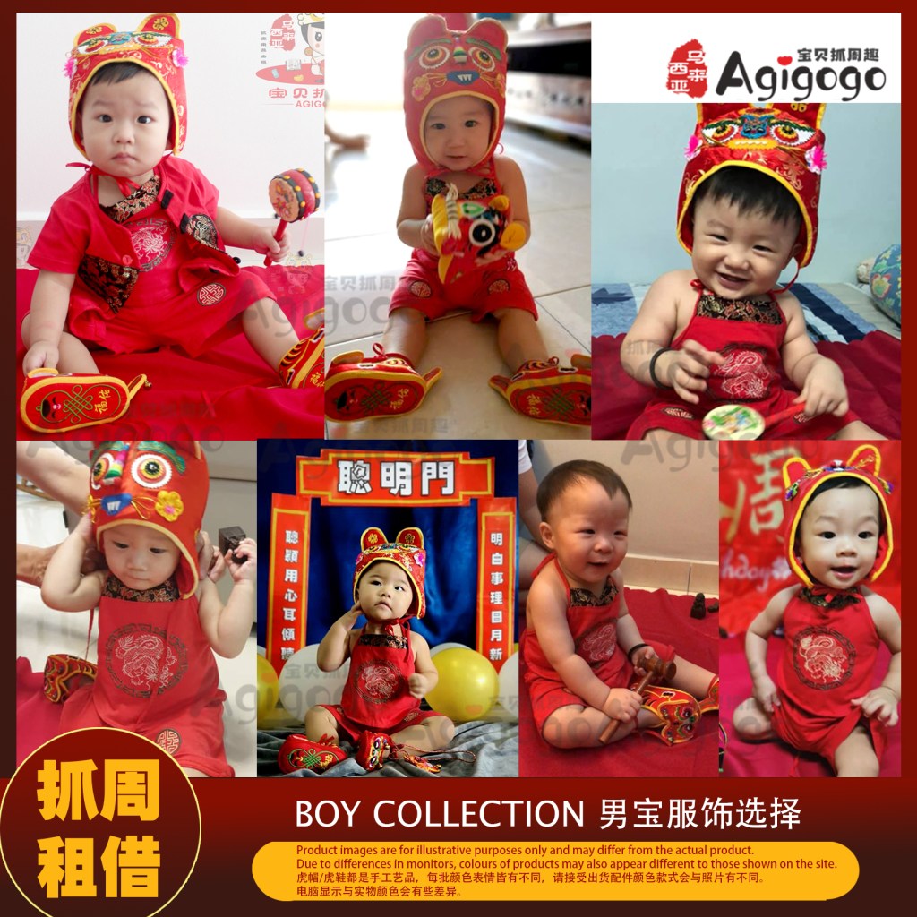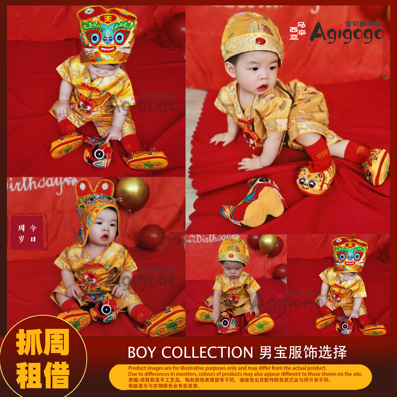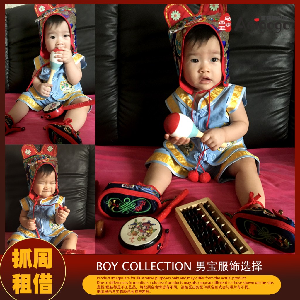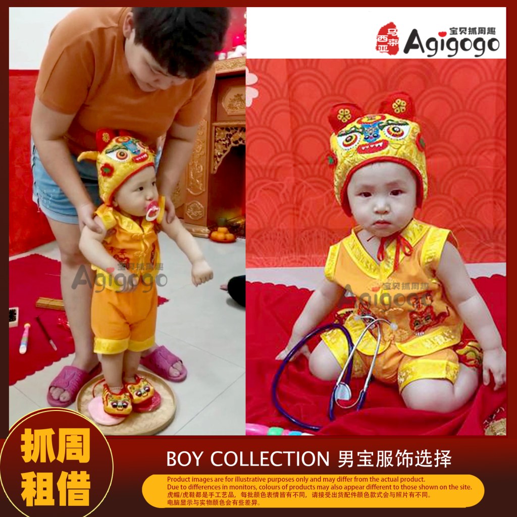 Package Included: Traditional Chinese clothing for the “Zhuazhou” ceremony, including a tiger head hat and tiger shoes. Free shipping available now.