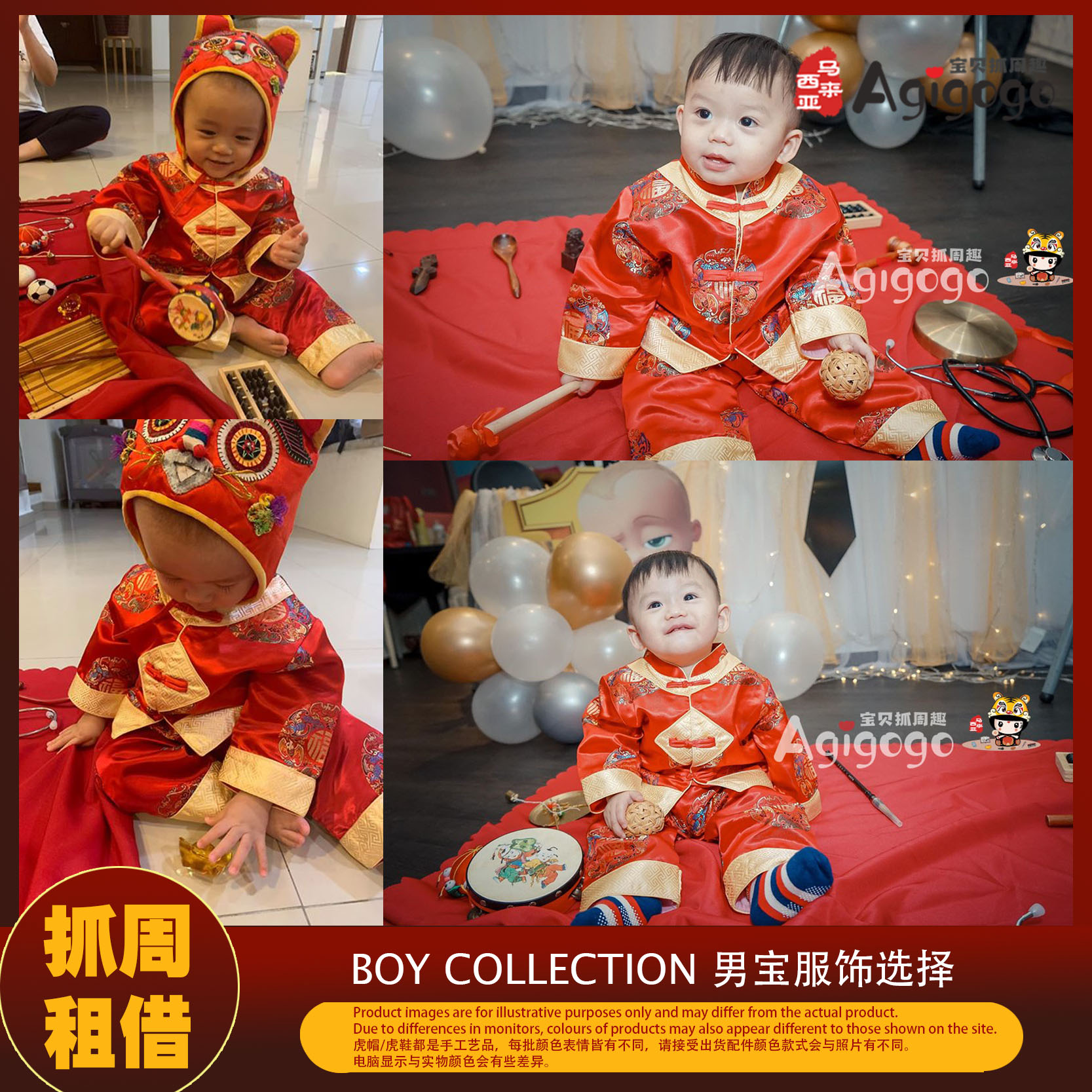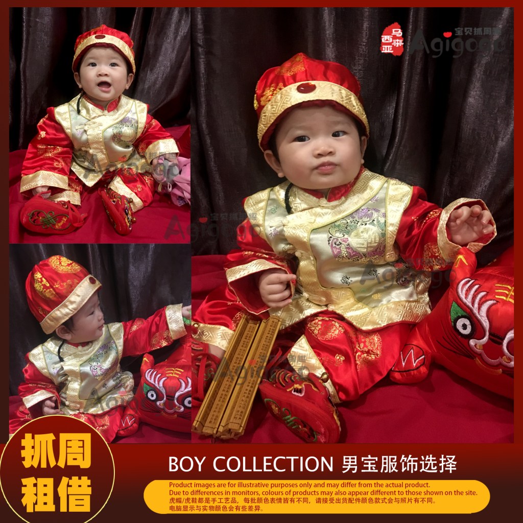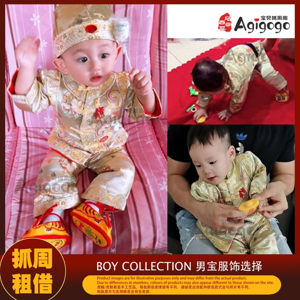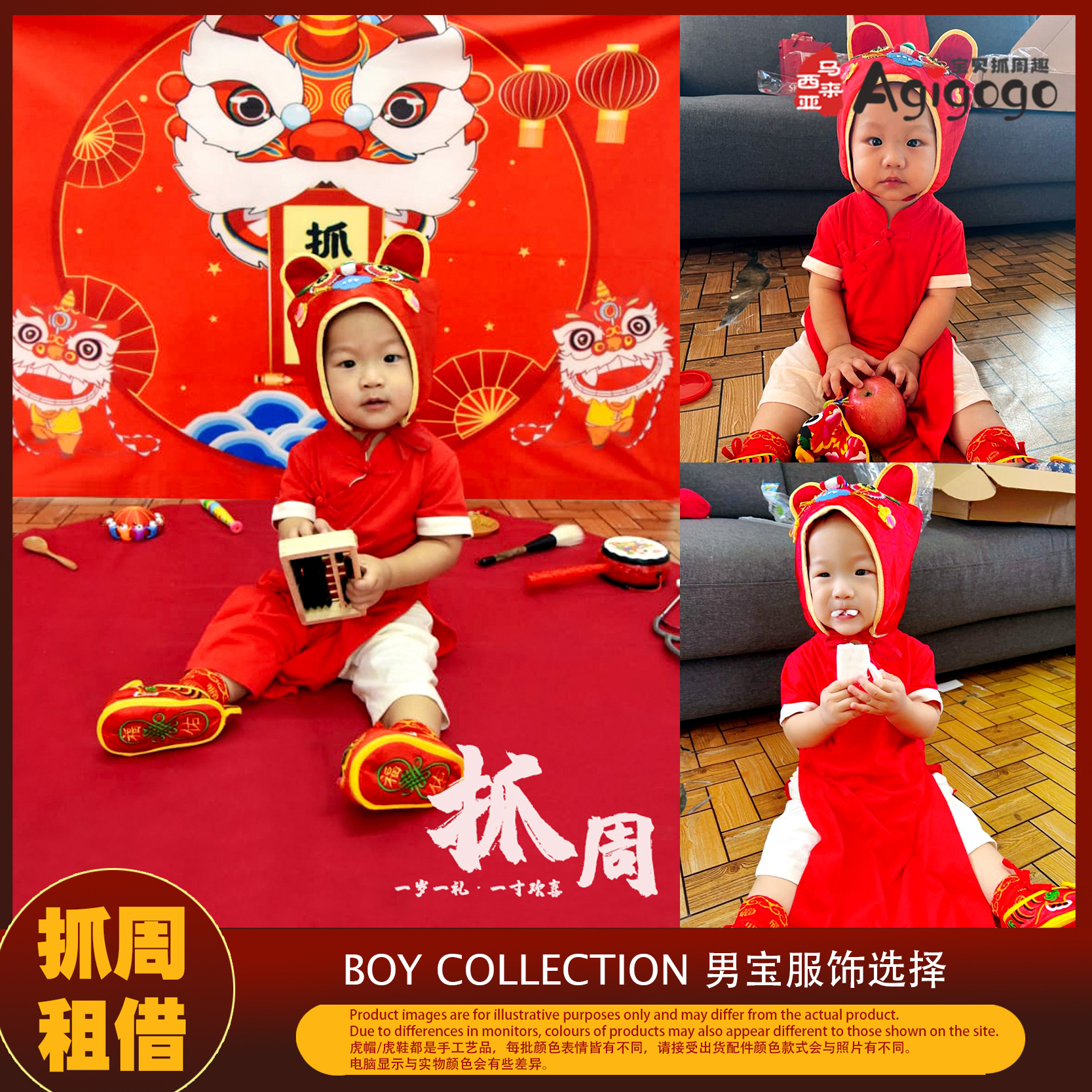 Package Included: Traditional Chinese clothing for the “Zhuazhou” ceremony, including a tiger head hat and tiger shoes. Free shipping available now.