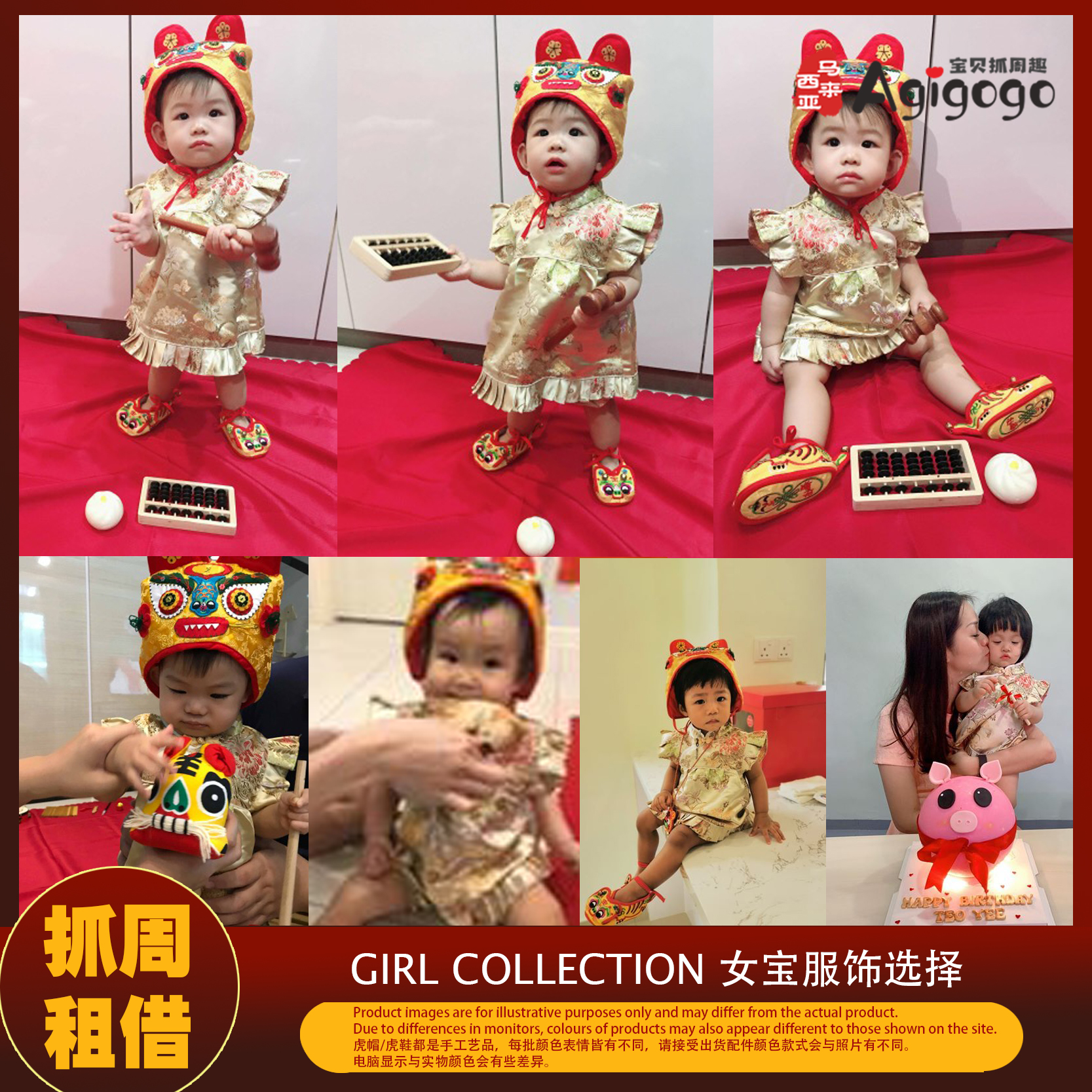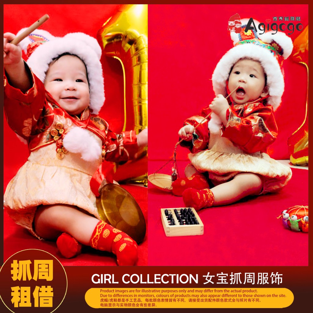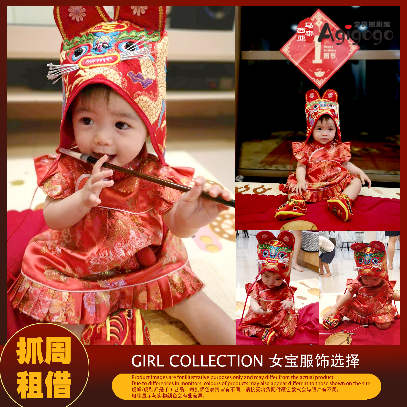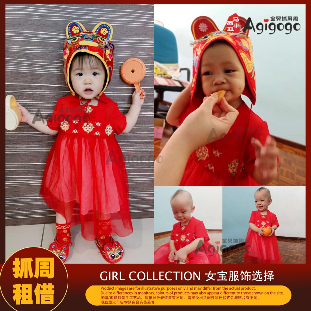 Package Included: Traditional Chinese clothing for the “Zhuazhou” ceremony, including a tiger head hat and tiger shoes. Free shipping available now.