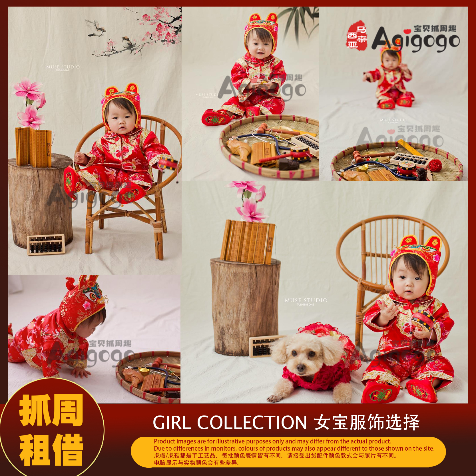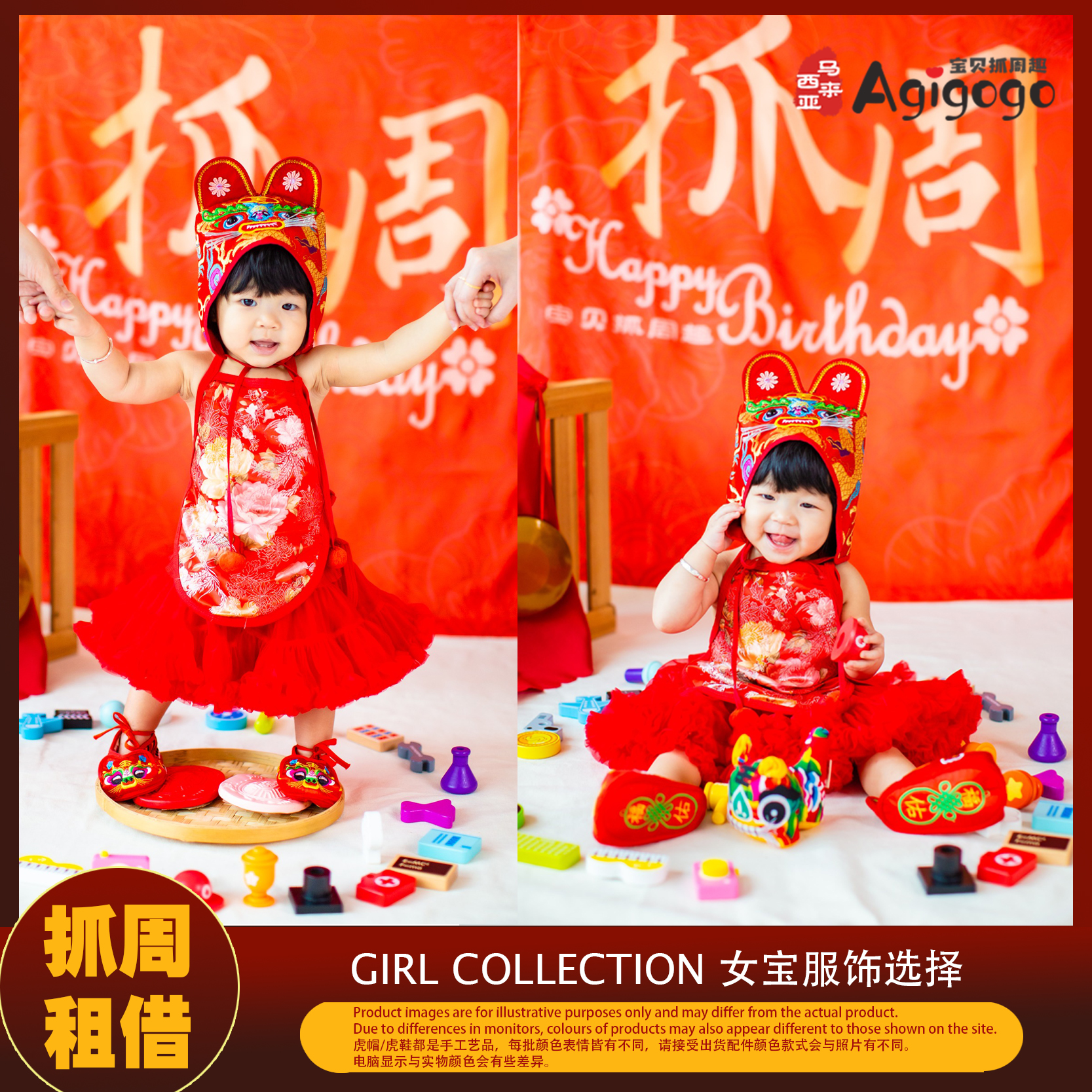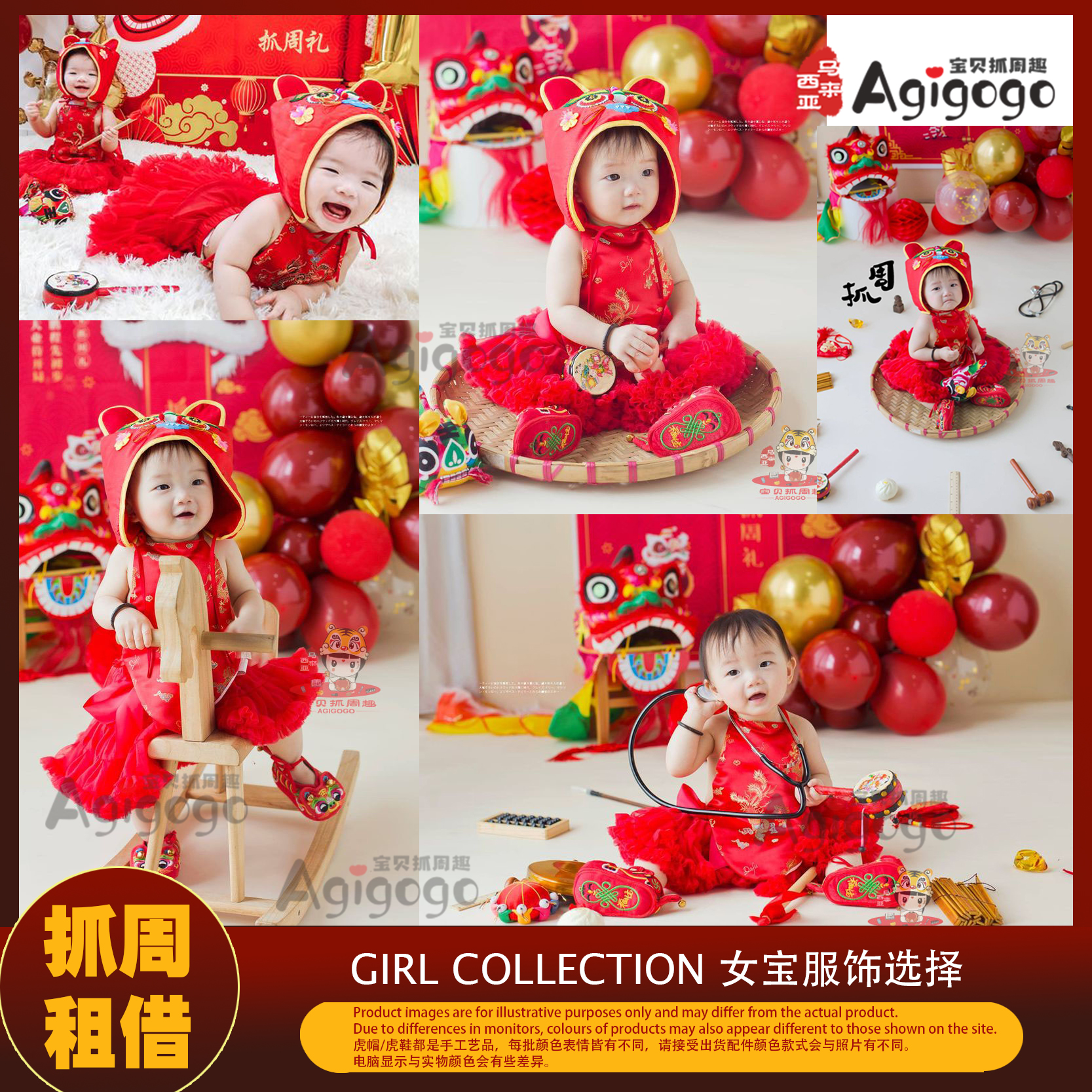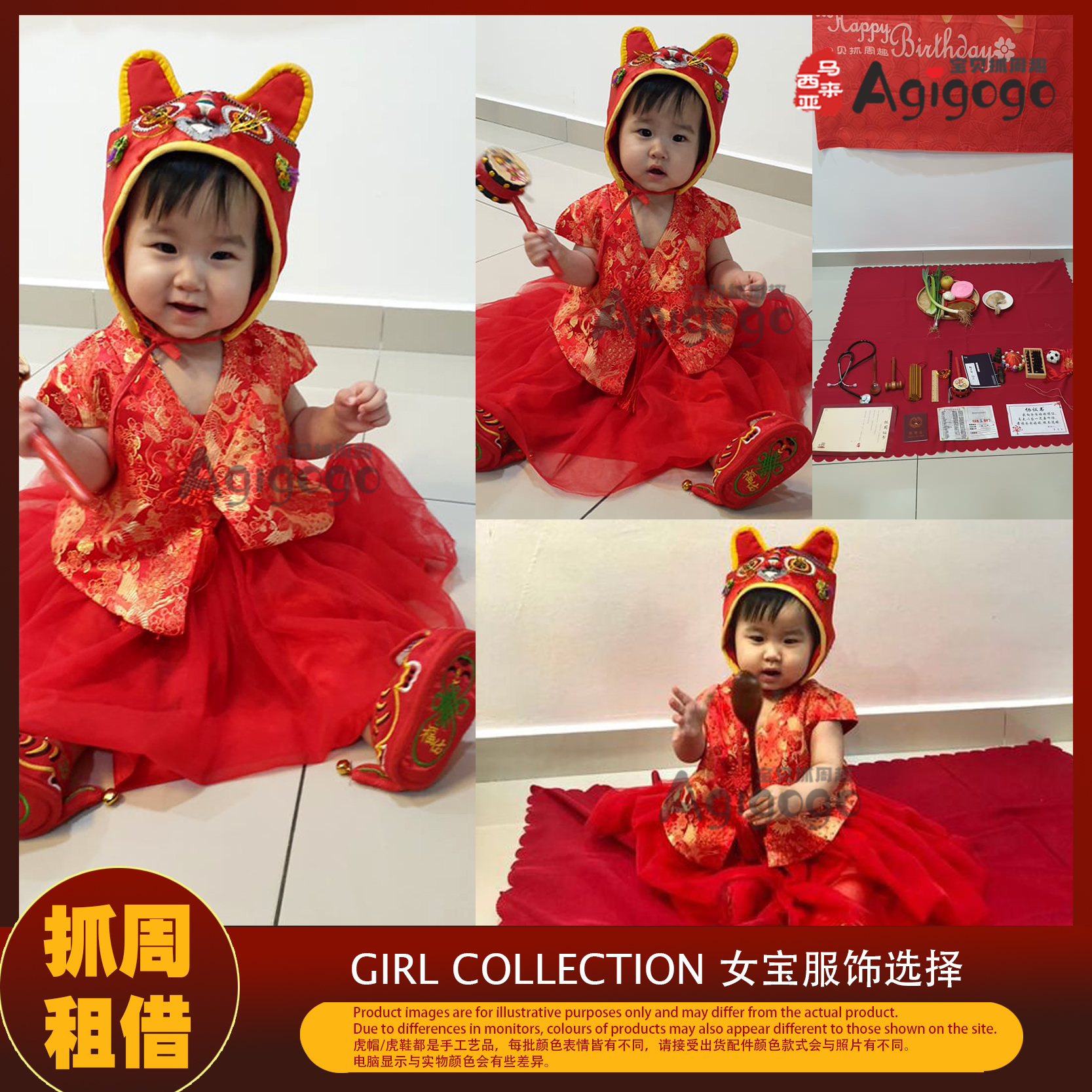 Package Included: Traditional Chinese clothing for the “Zhuazhou” ceremony, including a tiger head hat and tiger shoes. Free shipping available now.