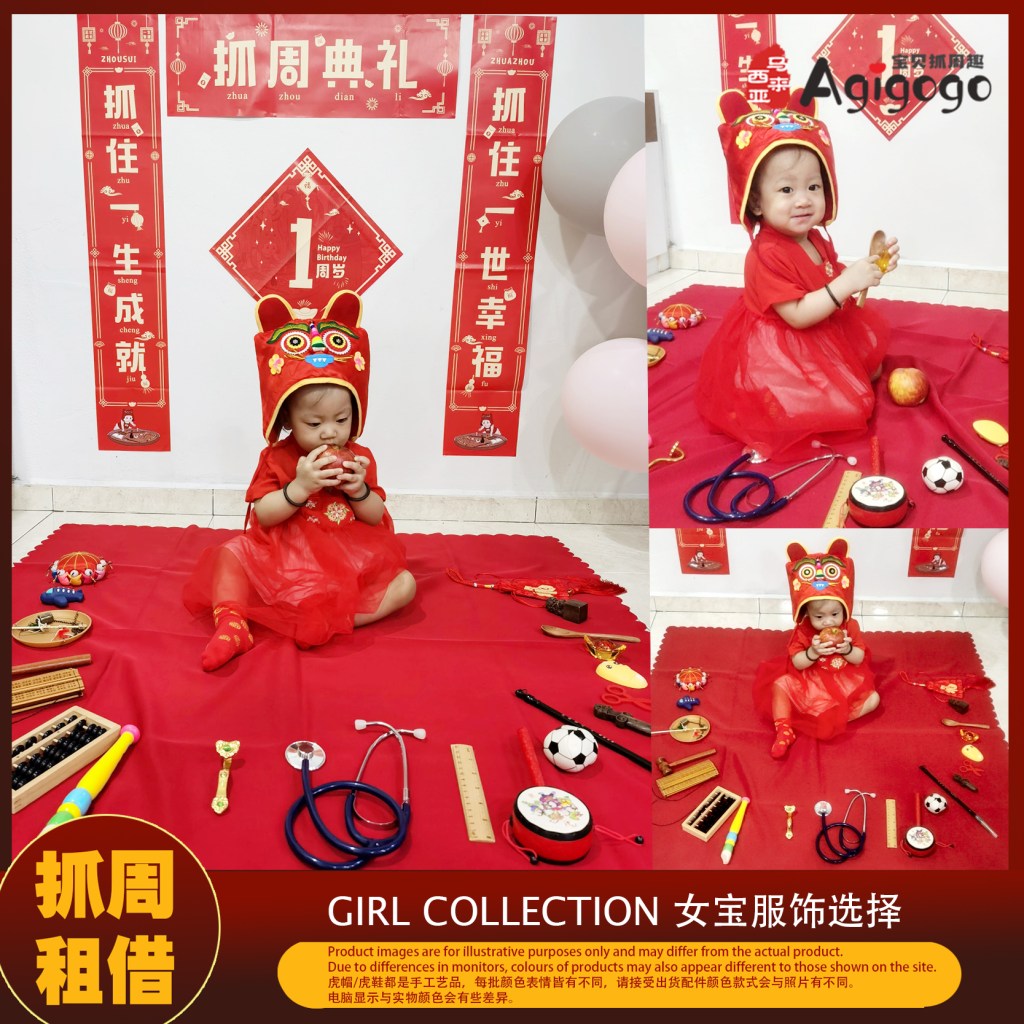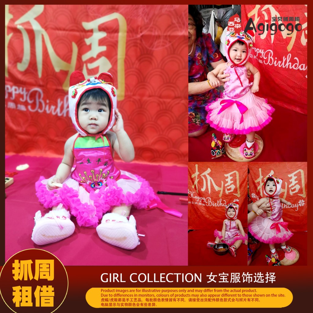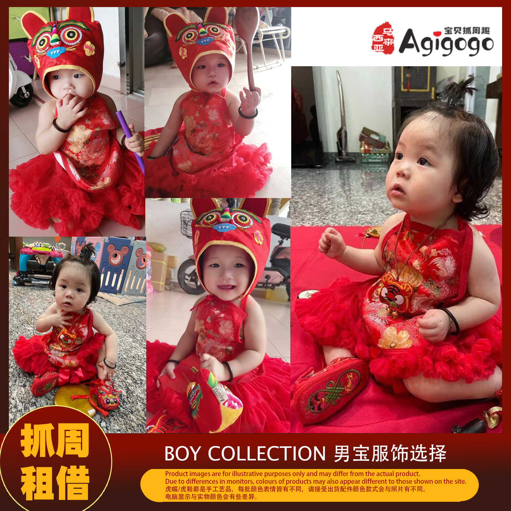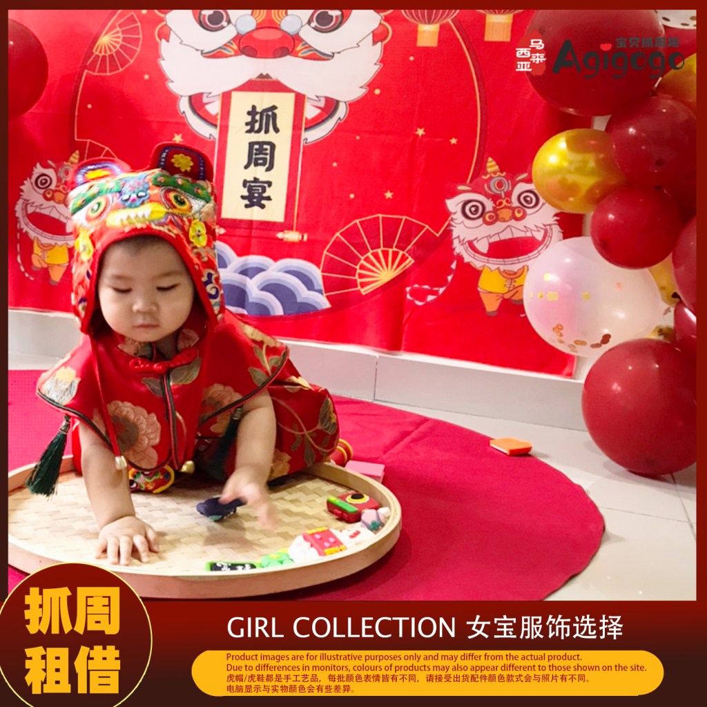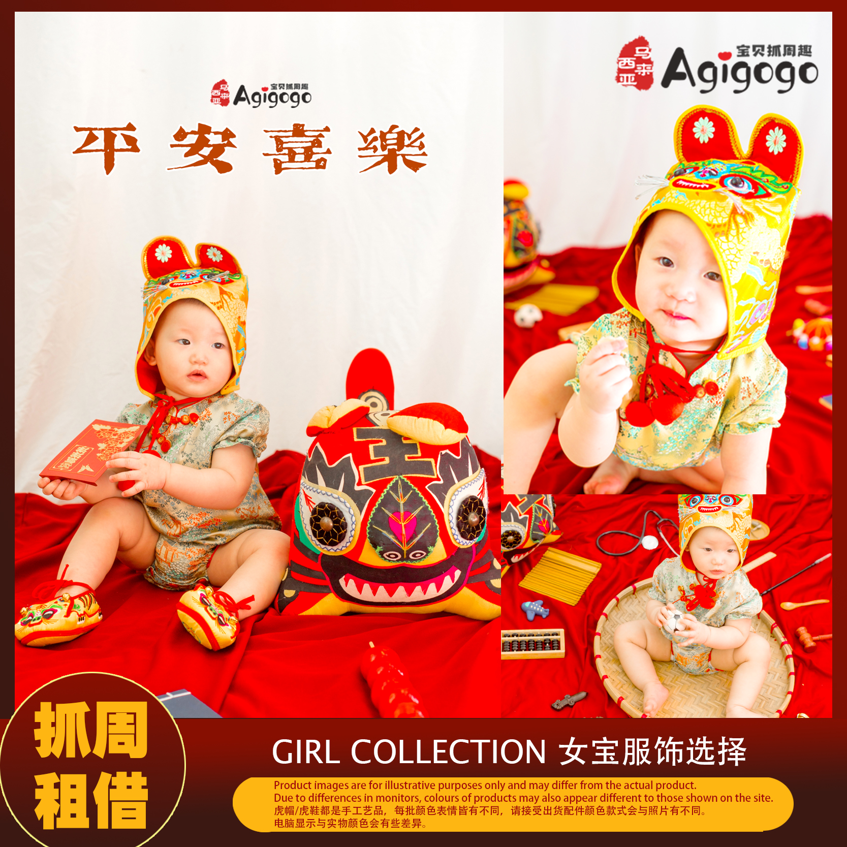 服饰租借包含了同色系的虎帽与虎鞋。服饰尺码适合约75-80cm身高的宝贝。虎帽是手工制作的,每一批虎帽的面料与款式细节都会有所不同。我们会不定期淘汰并换新的款式,采用随机出货(有毛边或无毛边)。爸爸妈咪挑选适合抓周的服饰后,请记下服饰的篇号,欢迎向我们询问具体的服饰档期。