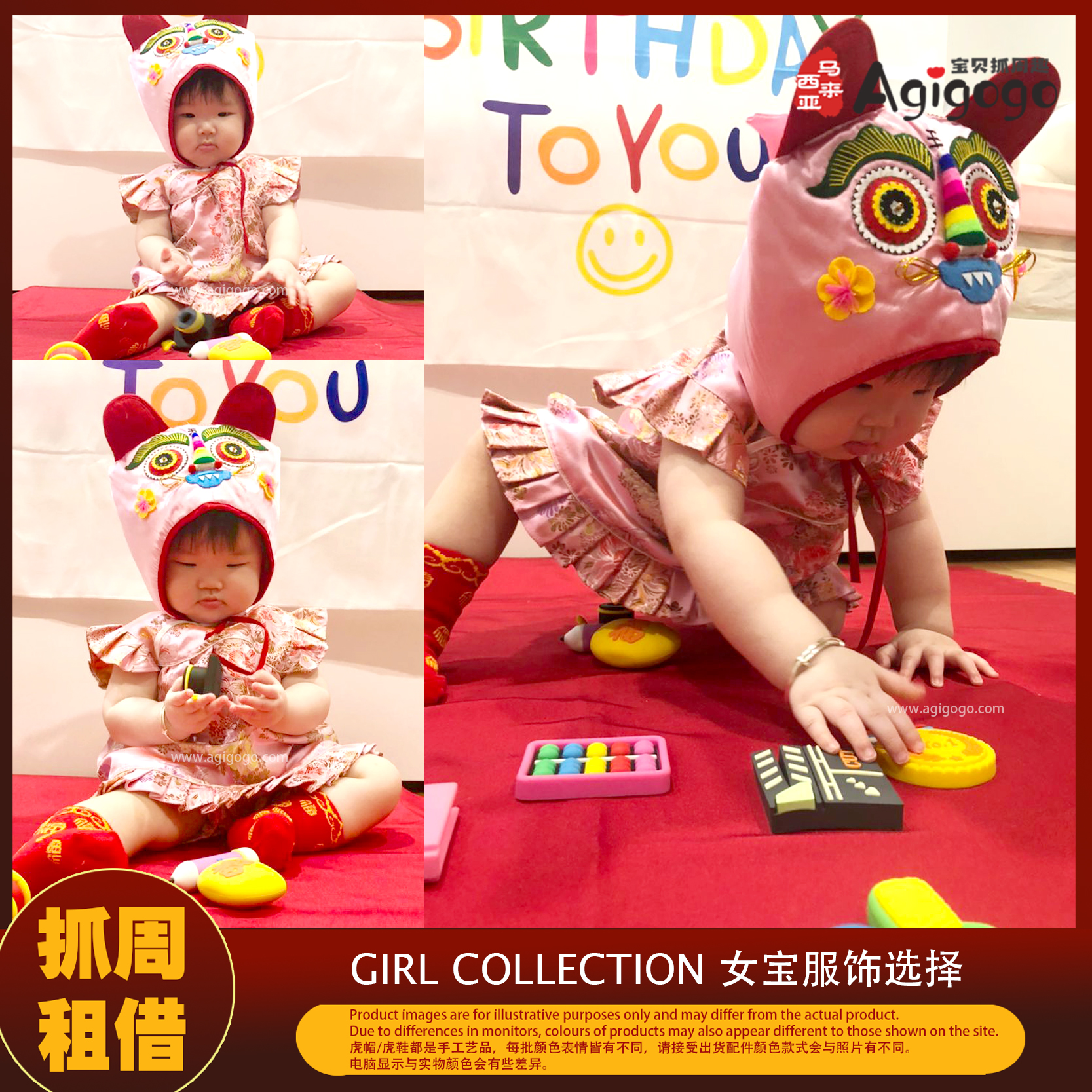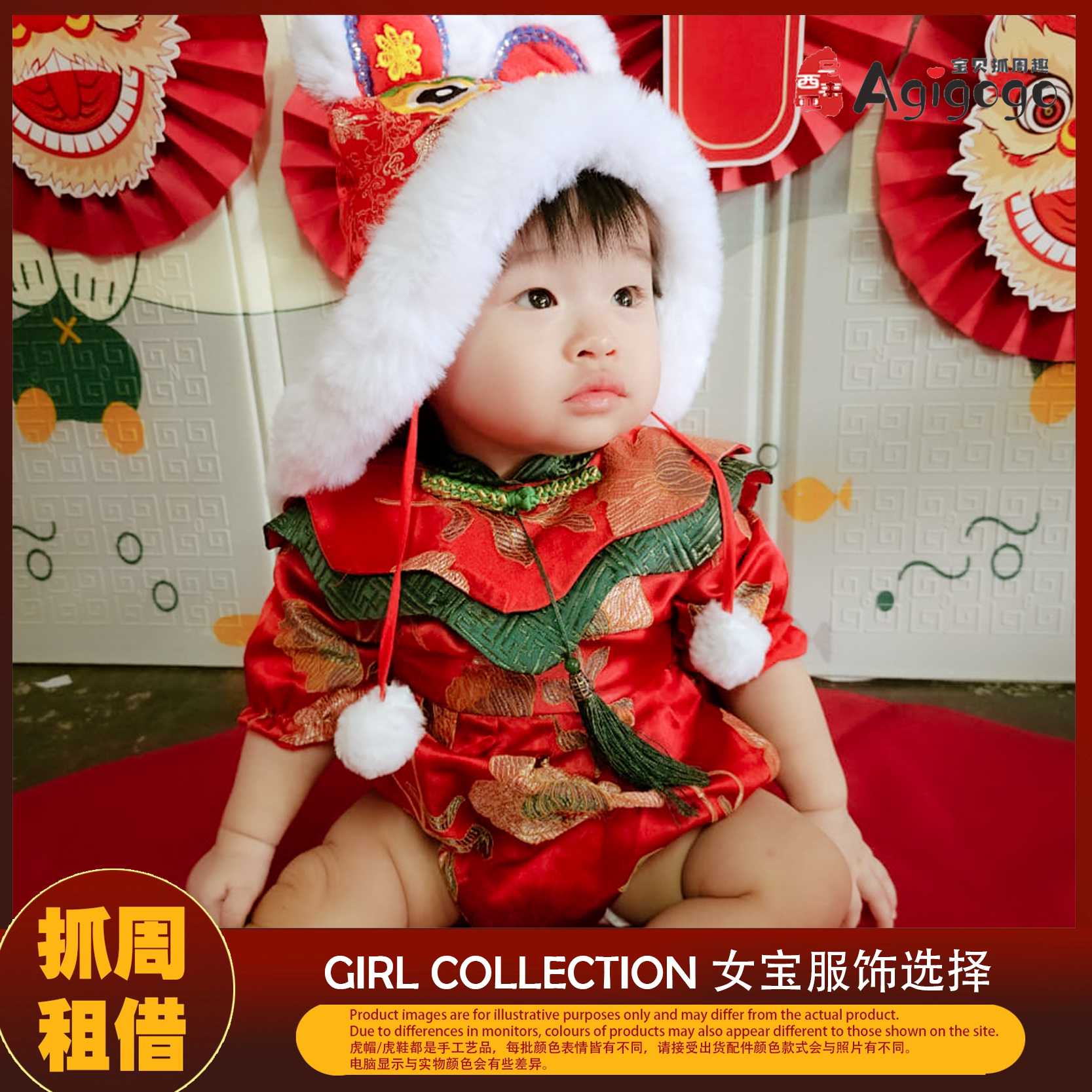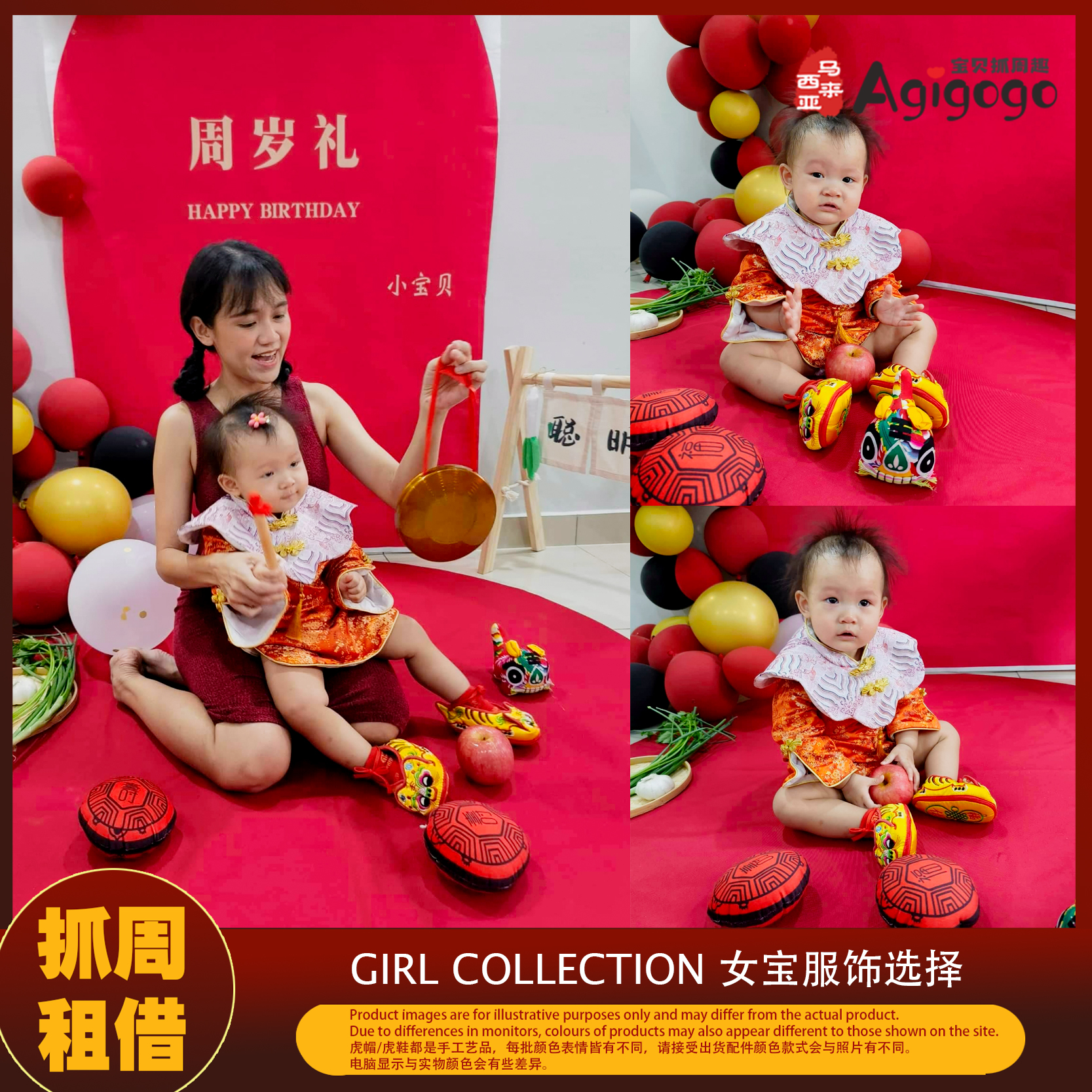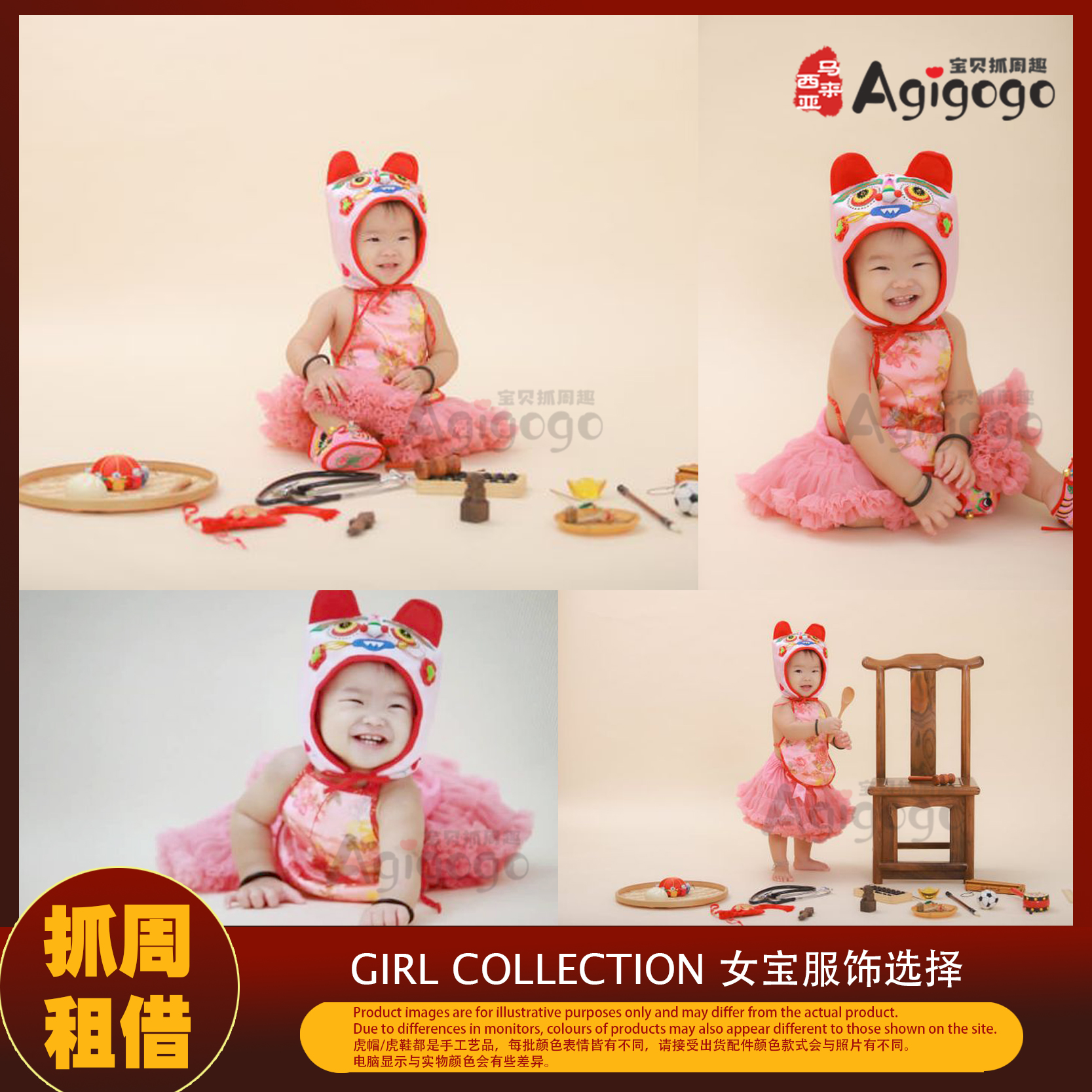 服饰租借包含了同色系的虎帽与虎鞋。服饰尺码适合约75-80cm身高的宝贝。虎帽是手工制作的,每一批虎帽的面料与款式细节都会有所不同。我们会不定期淘汰并换新的款式,采用随机出货(有毛边或无毛边)。爸爸妈咪挑选适合抓周的服饰后,请记下服饰的篇号,欢迎向我们询问具体的服饰档期。