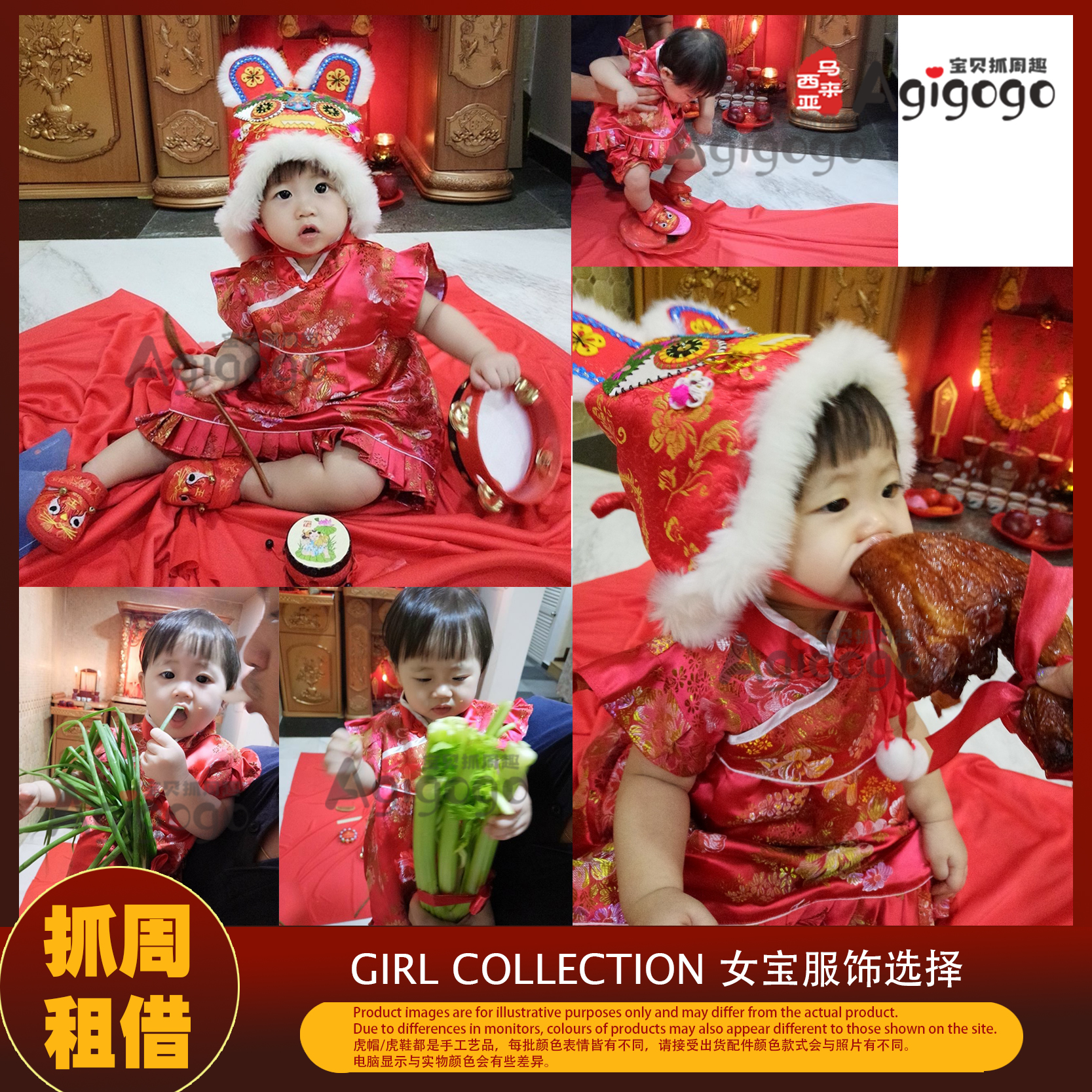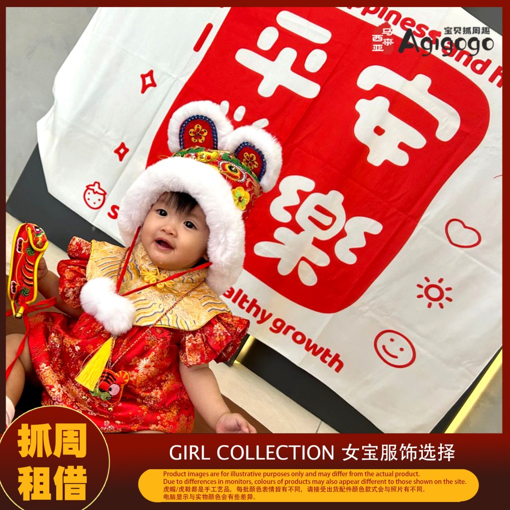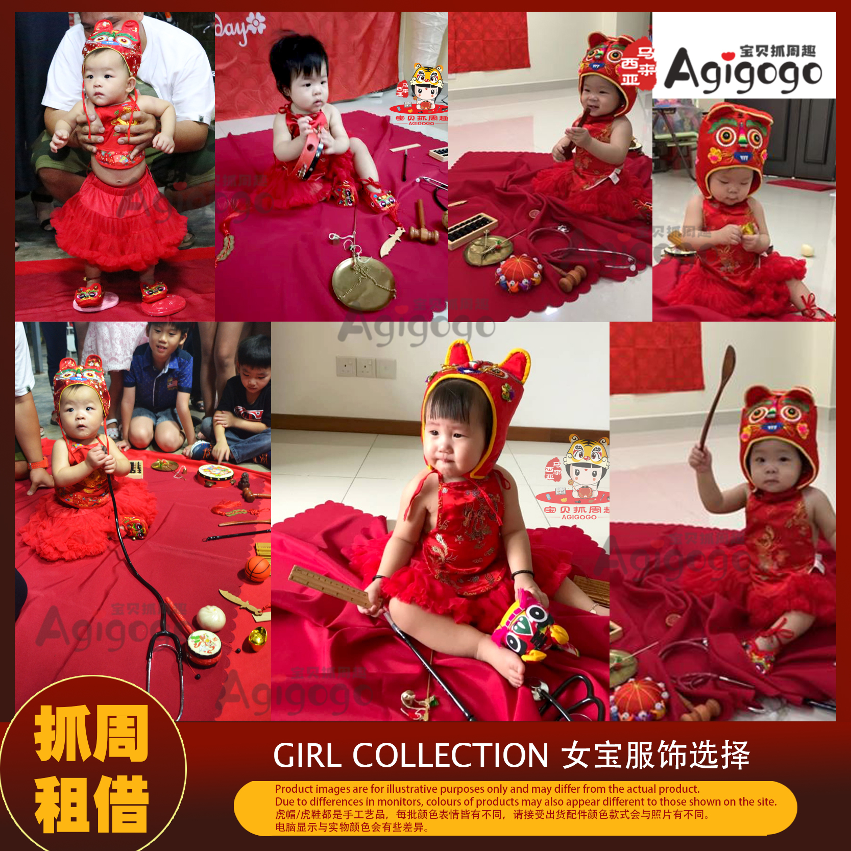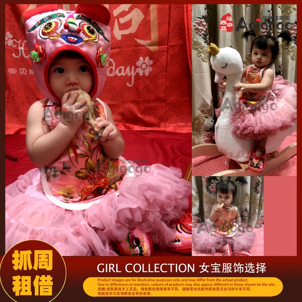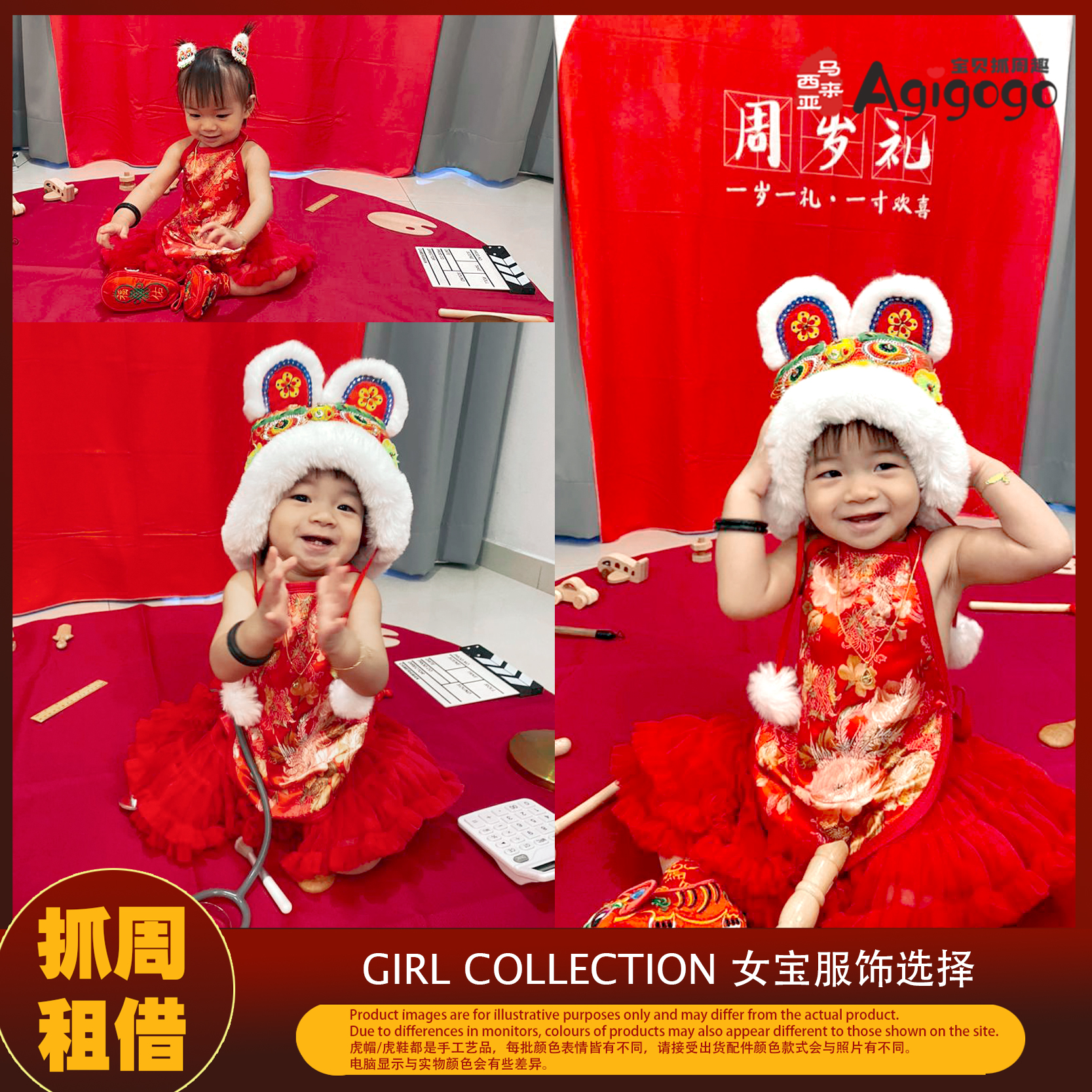 服饰租借包含了同色系的虎帽与虎鞋。服饰尺码适合约75-80cm身高的宝贝。虎帽是手工制作的,每一批虎帽的面料与款式细节都会有所不同。我们会不定期淘汰并换新的款式,采用随机出货(有毛边或无毛边)。爸爸妈咪挑选适合抓周的服饰后,请记下服饰的篇号,欢迎向我们询问具体的服饰档期。