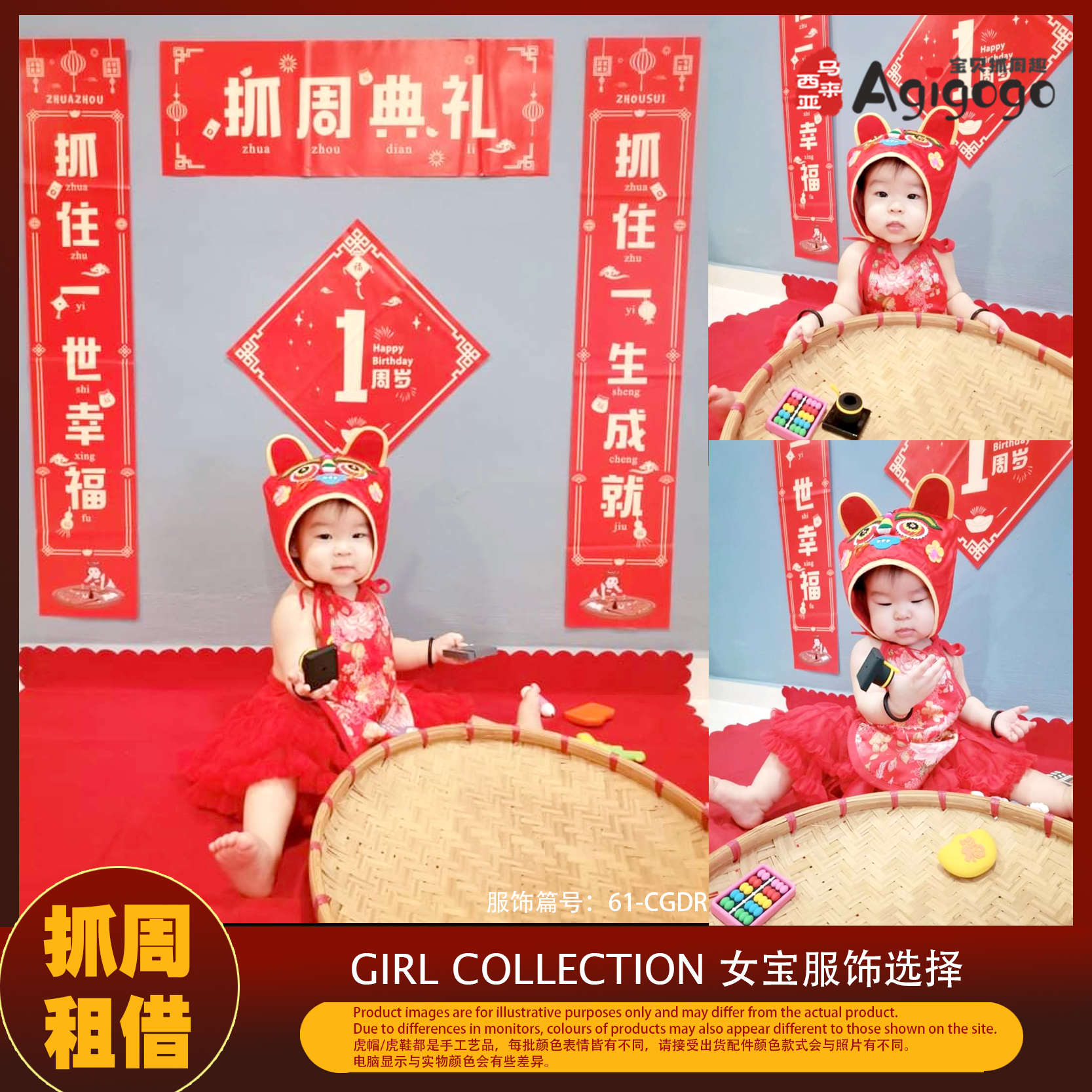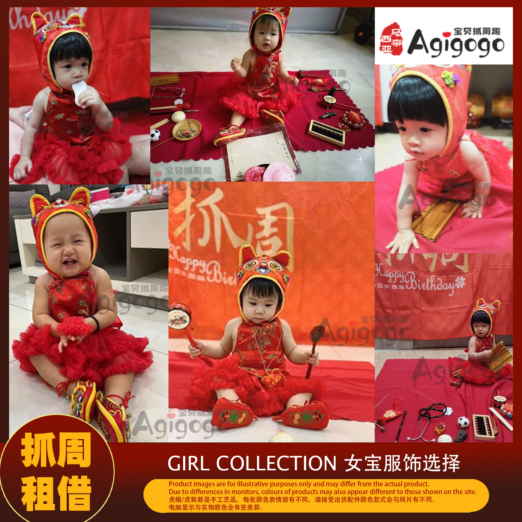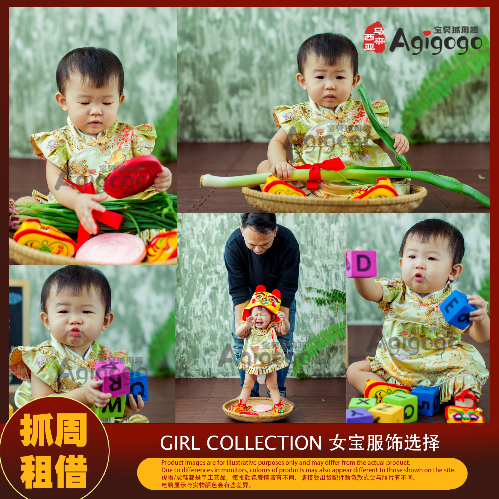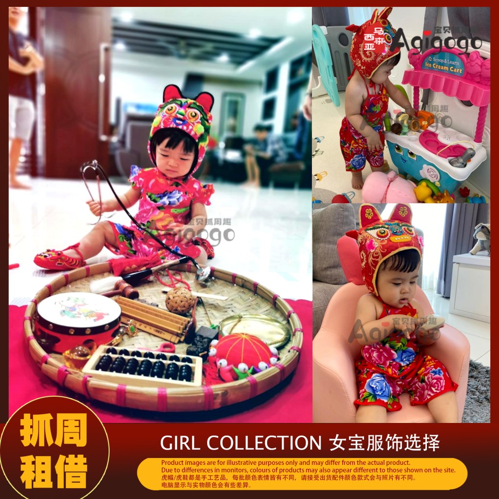服饰租借包含了同色系的虎帽与虎鞋。服饰尺码适合约75-80cm身高的宝贝。虎帽是手工制作的,每一批虎帽的面料与款式细节都会有所不同。我们会不定期淘汰并换新的款式,采用随机出货(有毛边或无毛边)。爸爸妈咪挑选适合抓周的服饰后,请记下服饰的篇号,欢迎向我们询问具体的服饰档期。